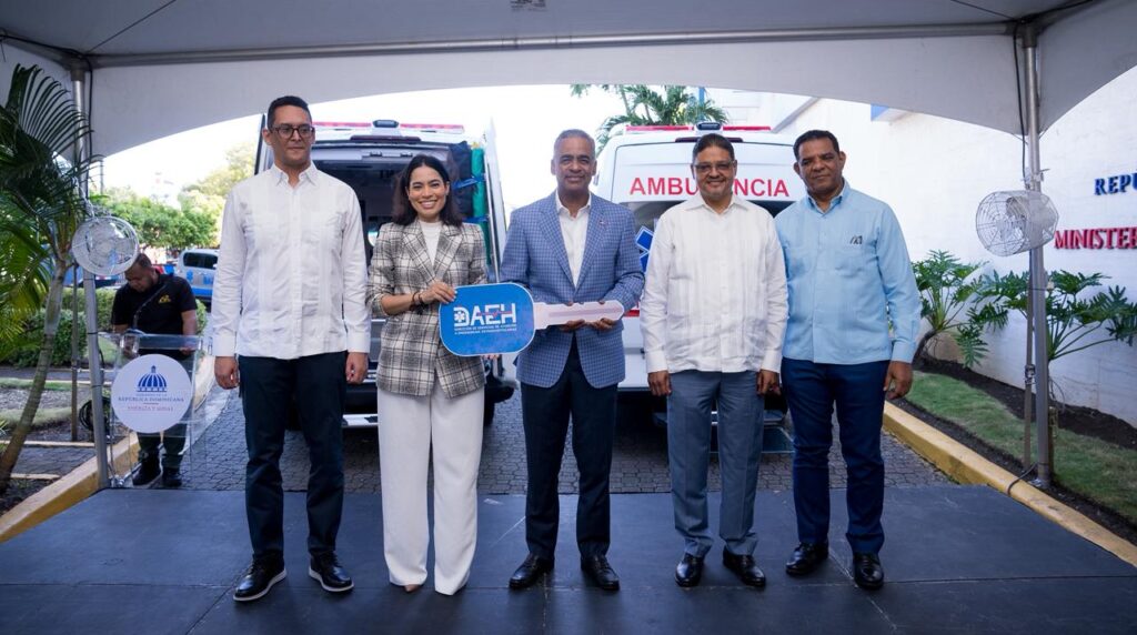 SANTO DOMINGO. El Gobierno dominicano, a través del Ministerio de Energía y Minas, entregó dos ambulancias para las provincias Barahona y Montecristi, como parte del fortalecimiento de los servicios de emergencia extrahospitalaria a nivel nacional y del compromiso del presidente Luis Abinader con la protección de la vida, dignidad y bienestar de la población.