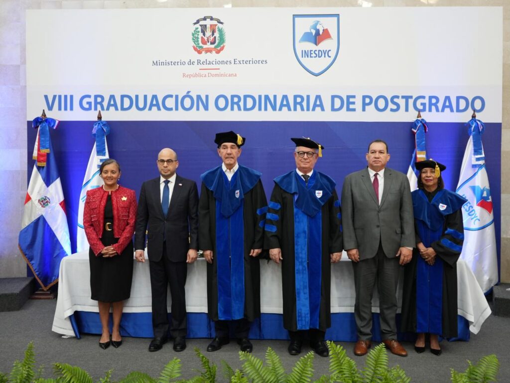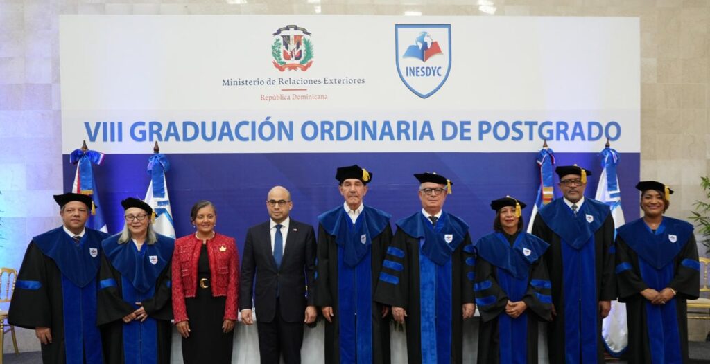Santo Domingo. -El Instituto de Educación Superior en Formación Diplomática y Consular (INESDYC), órgano académico del Ministerio de Relaciones Exteriores (MIREX), celebró su “Octava Graduación Ordinaria de Postgrado”, en la cual se graduaron 43 nuevos profesionales, 21 maestrantes en Diplomacia y Servicio Consular y 22 Especialistas en Diplomacia Comercial.